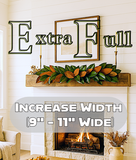 Our regular grade garlands (listed prices) are 6-8 in wide, our extra full is 9-11 in wide. If you would like your garland "extra full" it is an upgrade. This listing is where you can do that!