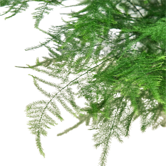 Description: The asparagus fern plant is not really a fern at all, but a member of the Liliaceae family, making it a relative of lilies and tulips. However, care is similar to most ferns. When growing asparagus ferns inside, place them near places with humidity and indirect light. Mist regularly. Its lush and frilly foliage makes it appear soft and fuzzy, but beware that there are thorny spurs. It's toxic to humans and animals, and is commonly placed in hanging displays.