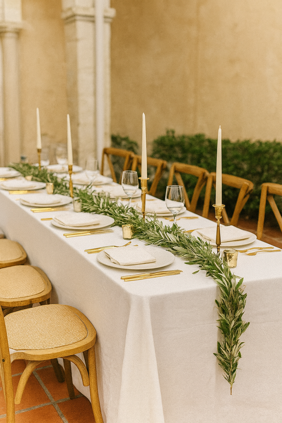 Bring timeless elegance and fresh fragrance to your celebrations with our Olive, Bay Leaf, and Rosemary Garland. Handcrafted with lush Mediterranean-inspired foliage, this garland combines the silvery-green beauty of olive leaves, the deep, glossy richness of bay, and the aromatic charm of rosemary sprigs.