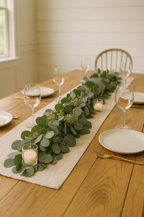 Perfect for weddings, events, and home décor, this garland creates a fresh, organic feel wherever it’s placed. Whether draped across a farmhouse table, hung on a mantel, or styled along a wedding arch, it transforms your space with its graceful movement and vibrant greenery.